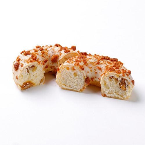 ふんわり柔らかな生地に、香ばしいキャラメルとほんのり香るシナモン風味のビスケットを合わせた、贅沢な味わいのドーナツです。 中にはビスケット風味のクリーミーなフィリングがたっぷり詰まっており、一口ごとに濃厚な風味が広がります。